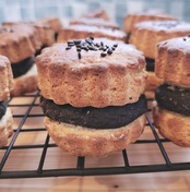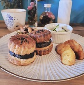 きな粉の風味が素朴ながらも香ばしく、その分黒ゴマ餡は濃厚でコントラストが映えるスコーンです。