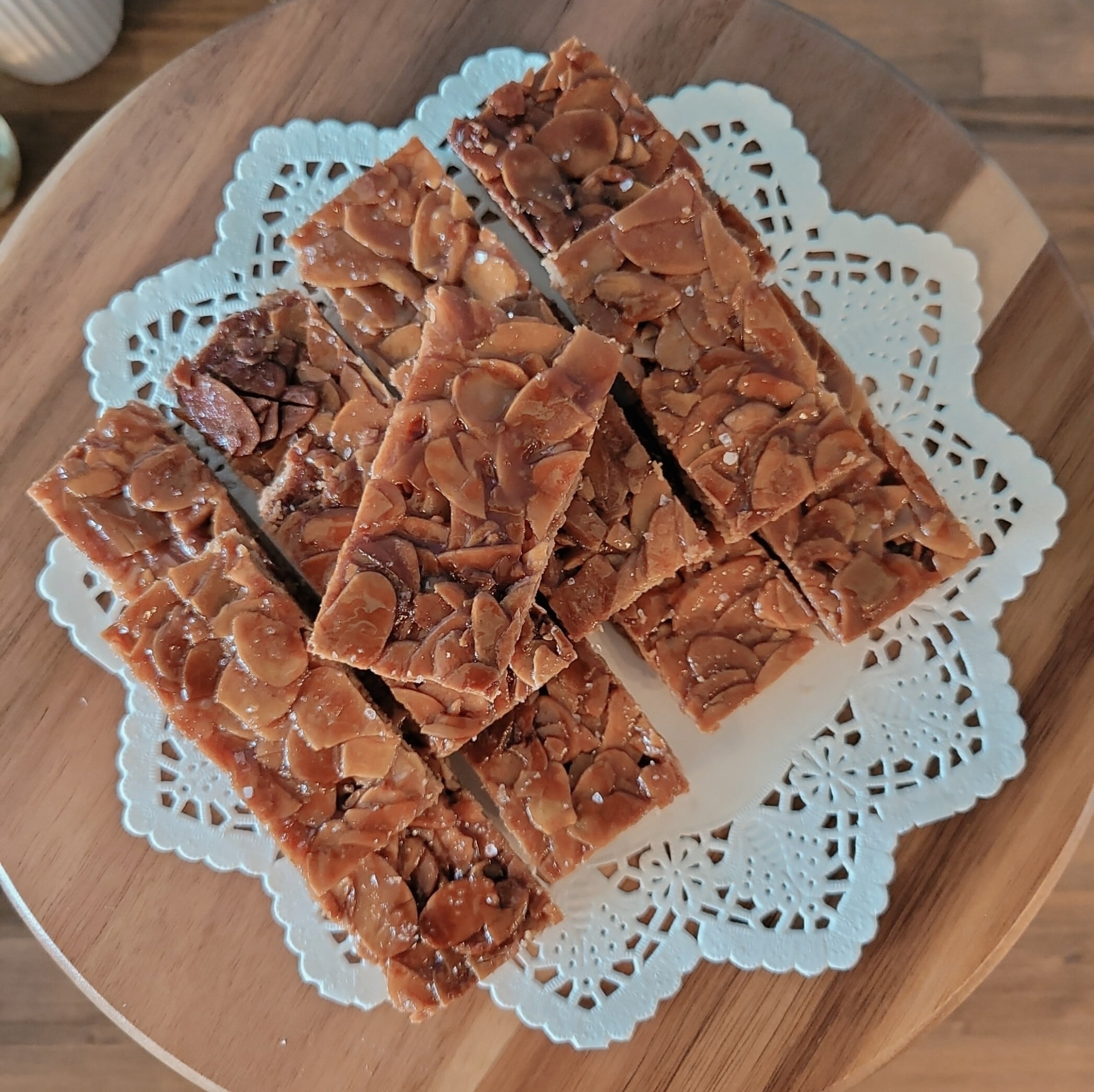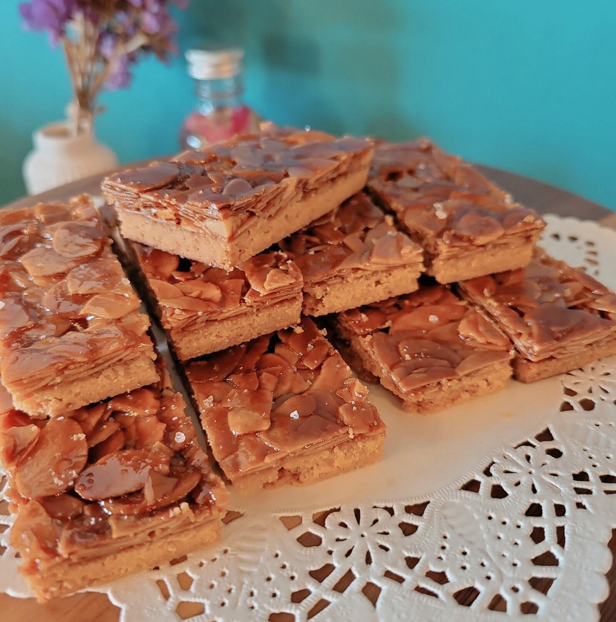 アーモンドとヌガーをたっぷり使ったリッチな味わいのフロランタンです。トップに岩塩をあしらってるので後味の切れが良く食べ飽きません。
